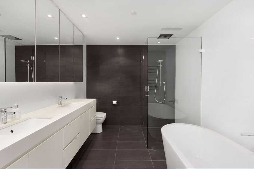 - Elegant full master ensuite, floor-to-ceiling tiles, freestanding tub, underfloor heating